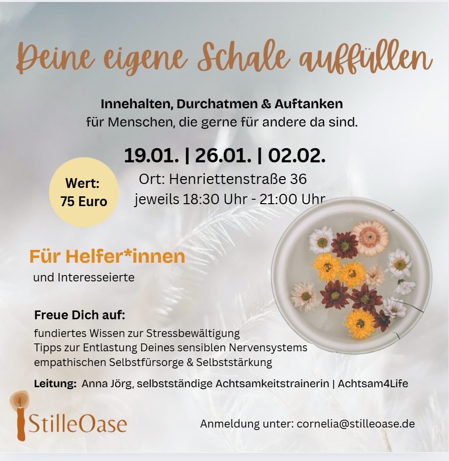 Anmeldung: cornelia@stilleoase.de | anna@achtsam4life.de